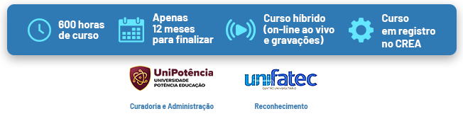Todo o conteúdo do curso, que é composto de vídeos e PDF, fica disponibilizado na área do aluno da Plataforma da UNIPOTÊNCIA na Hotmart. O acesso à plataforma é realizado por nome de usuário e senha, que são enviados para o aluno imediatamente após o pagamento da taxa de matrícula, da aprovação da documentação enviada, da assinatura do contrato e da confirmação do registro do aluno na UNIFATEC, parceira da UNIPOTÊNCIA.